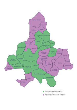 Ce que l’on appelle communément le « tout à l’égout » est un service que la Communauté de Communes a délégué à des sociétés privées pour le fonctionnement.